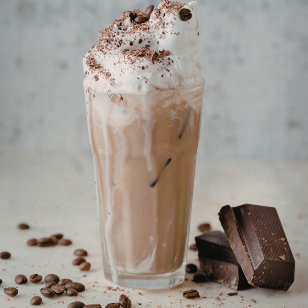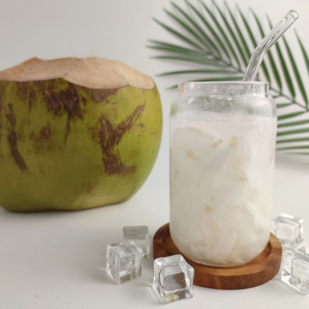 Café, leche vegetal coco y pulpa de coco