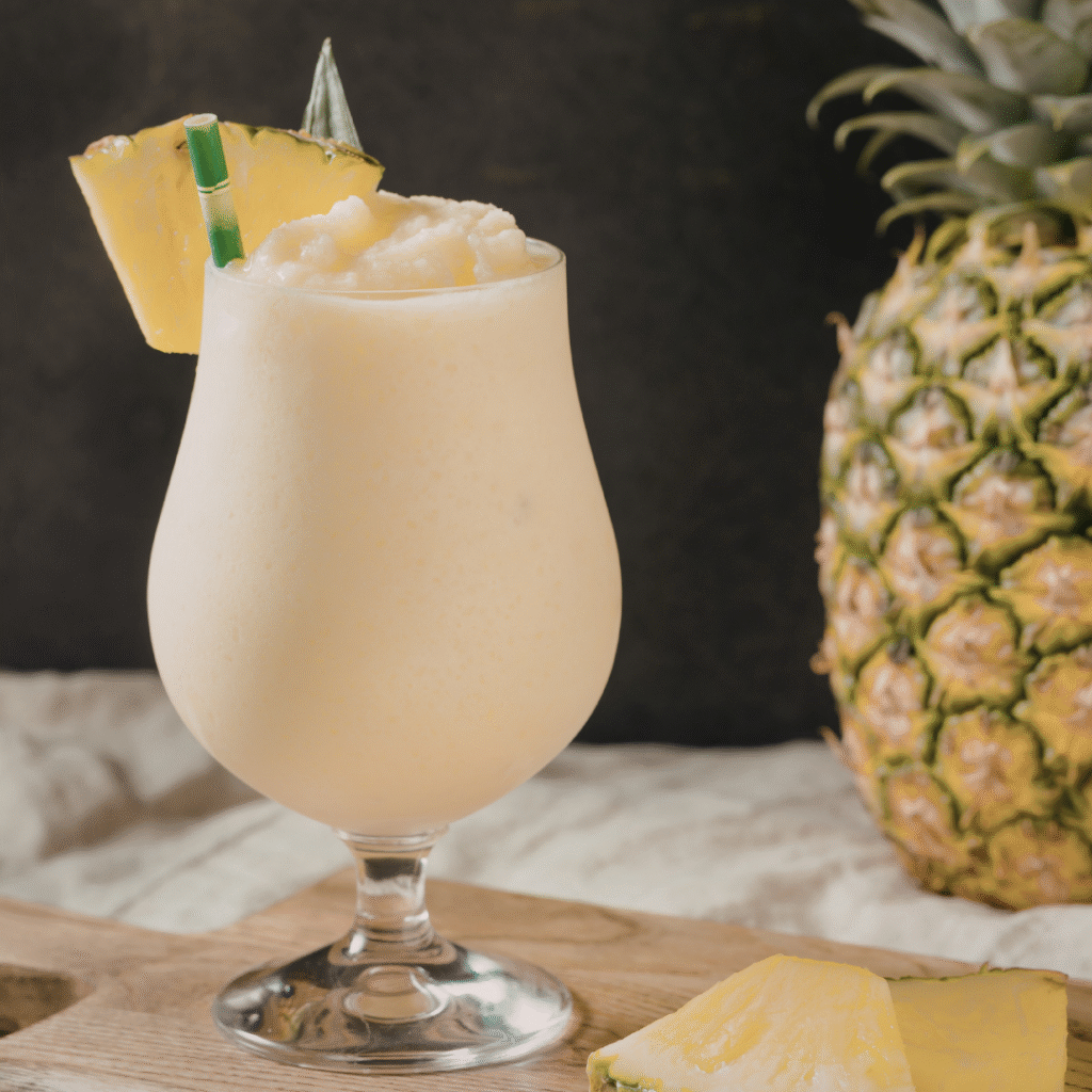 Piña, pulpa coco, zumo piña y ron